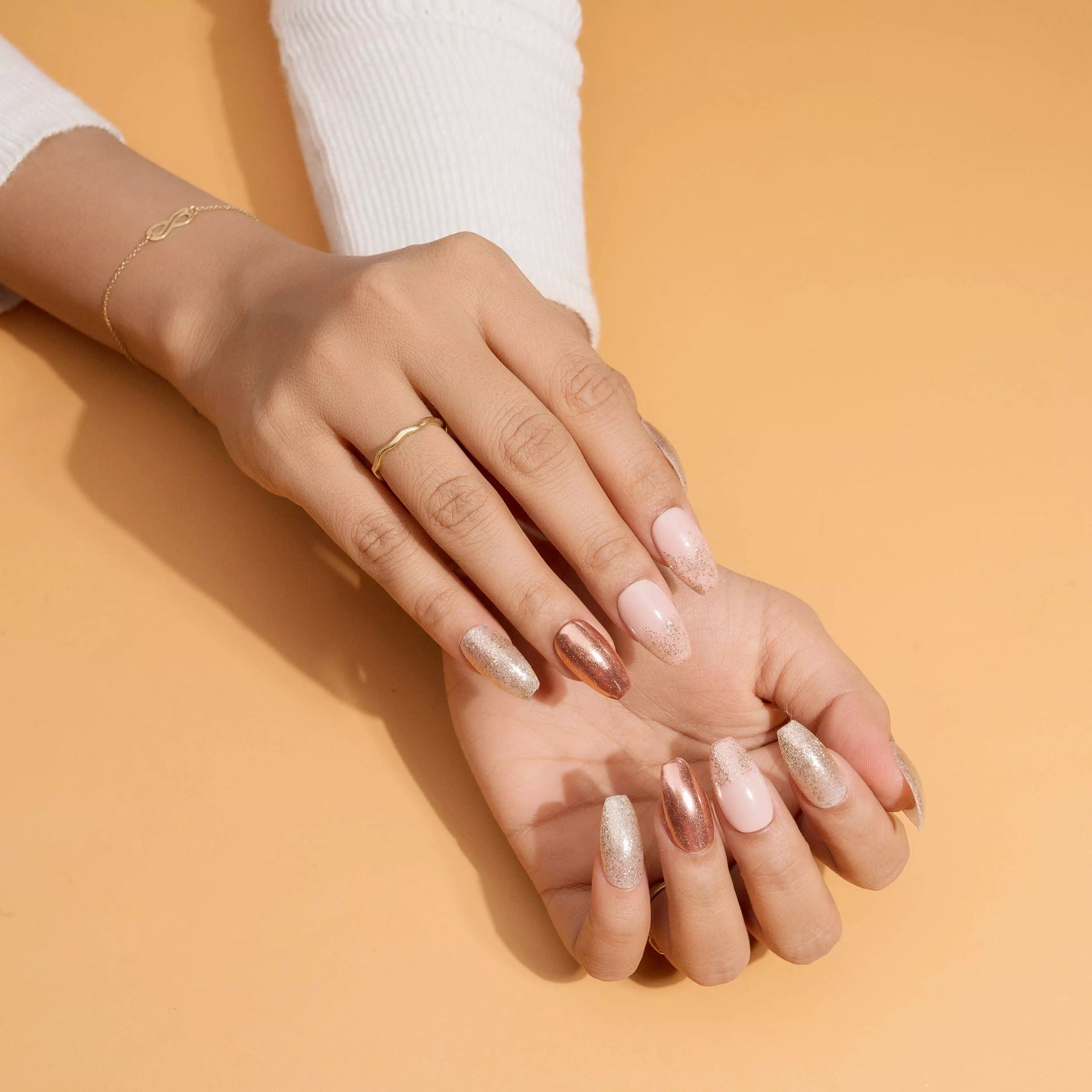 Rose Gold Glitter and Metallic Press-On Nails Set